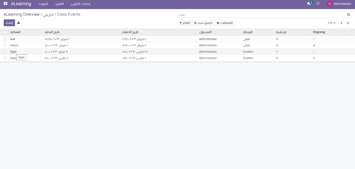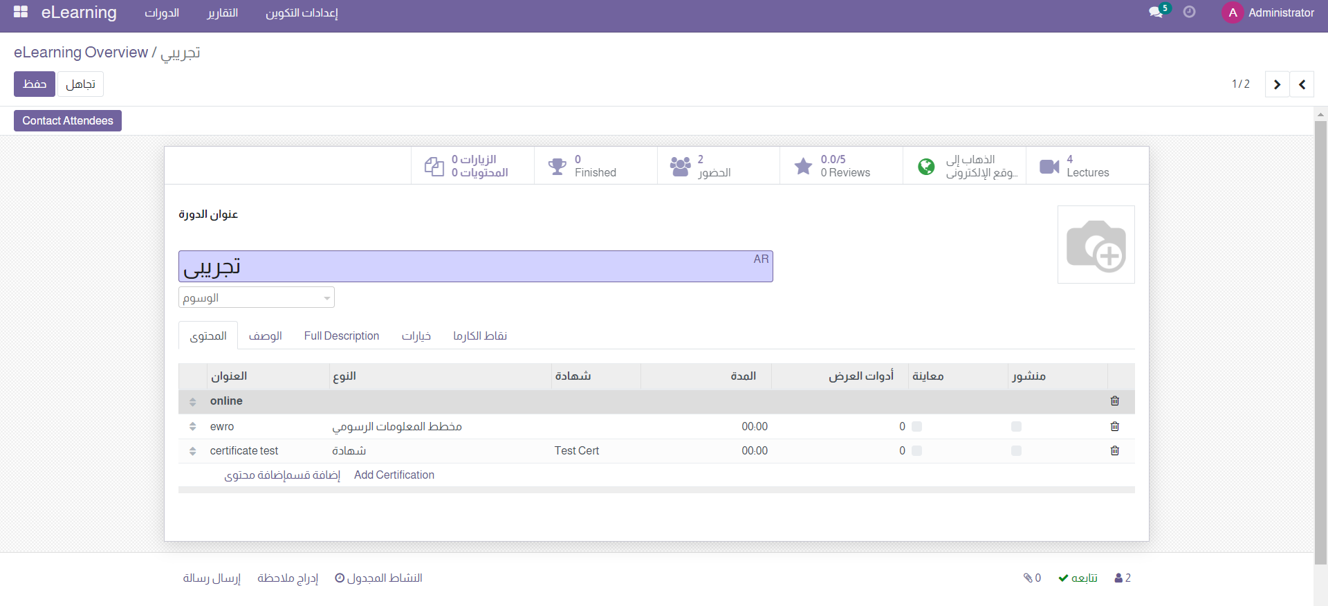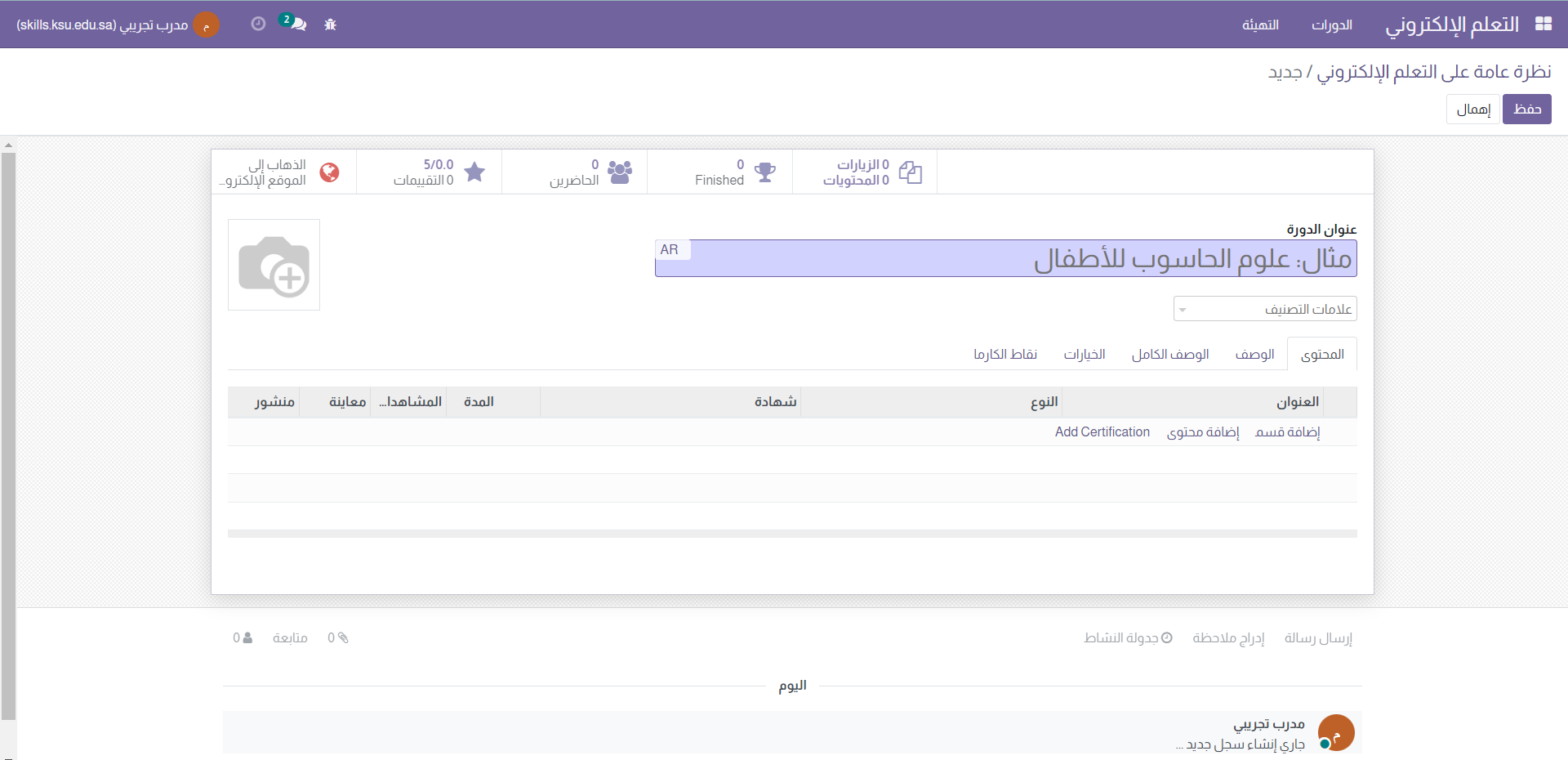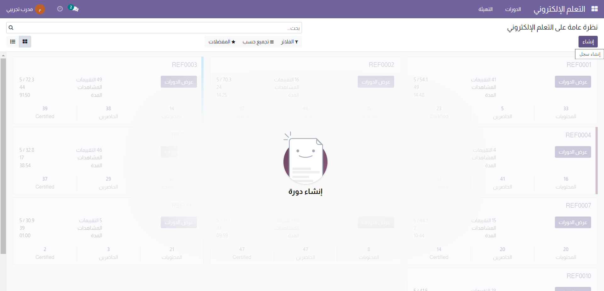 لإنشاء دورة تدريبية قم بالضغط على إنشاء