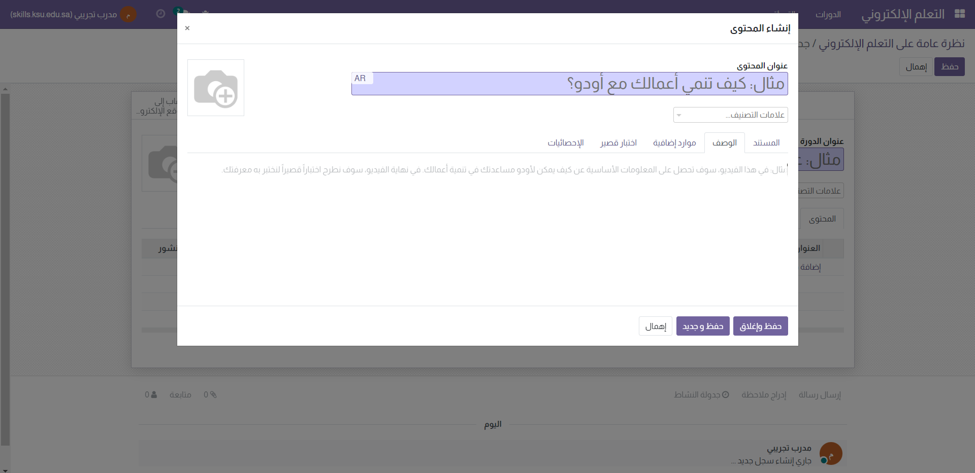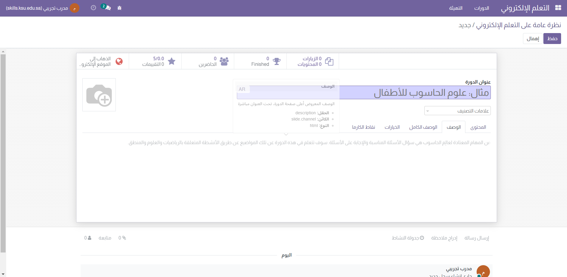 - في خانة الوصف قم بكتابة وصف بسيط للدورة