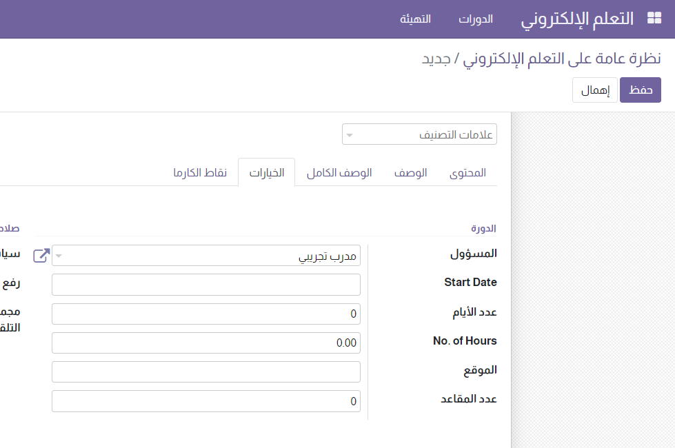 قم بتحديد العدد الأقصى من المتدربين للتسجيل بالدورة