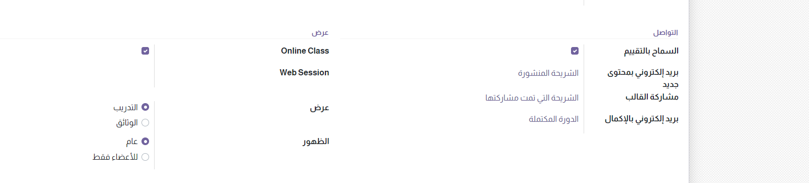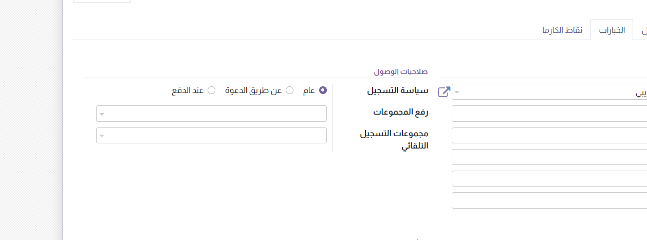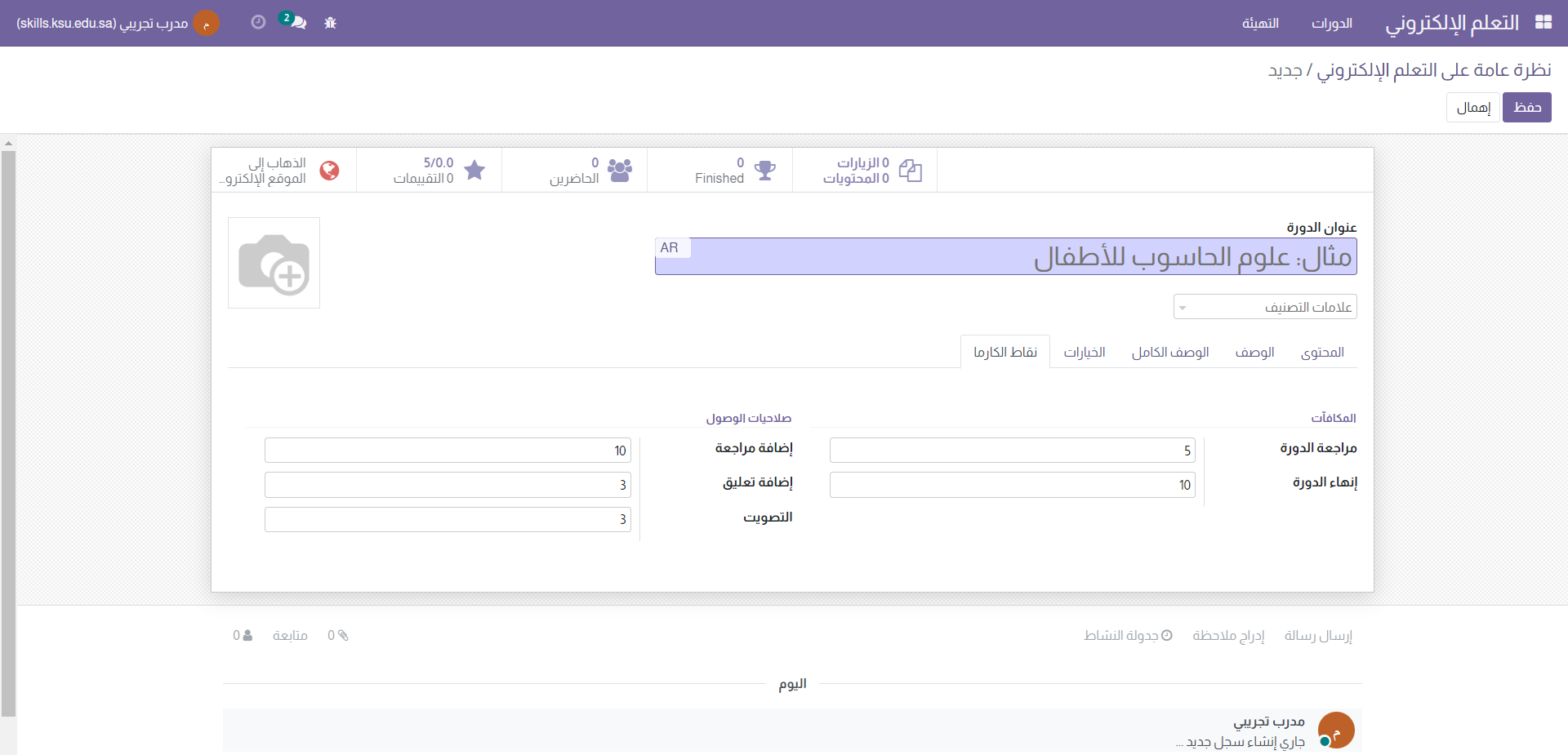 فى قسم نقاط الكارما قم بتحديد الصلاحيات المناسبة للمتدربين لاضافة تعليق و التصويت وانهاء الدورة الخ