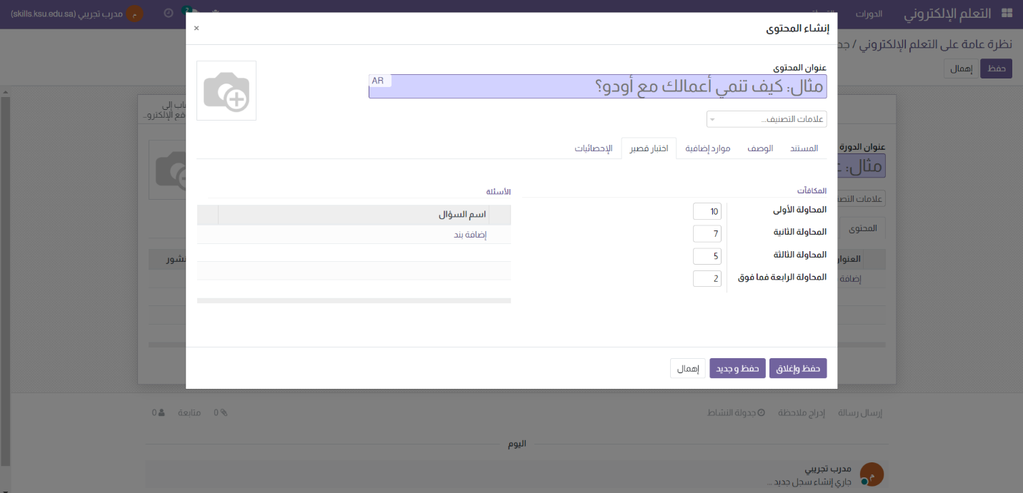للحفظ وانشاء سؤال جديد قم بالضغط على حفظ وجديد , للحفظ والاغلاق قم بالضغط على حفظ واغلاق