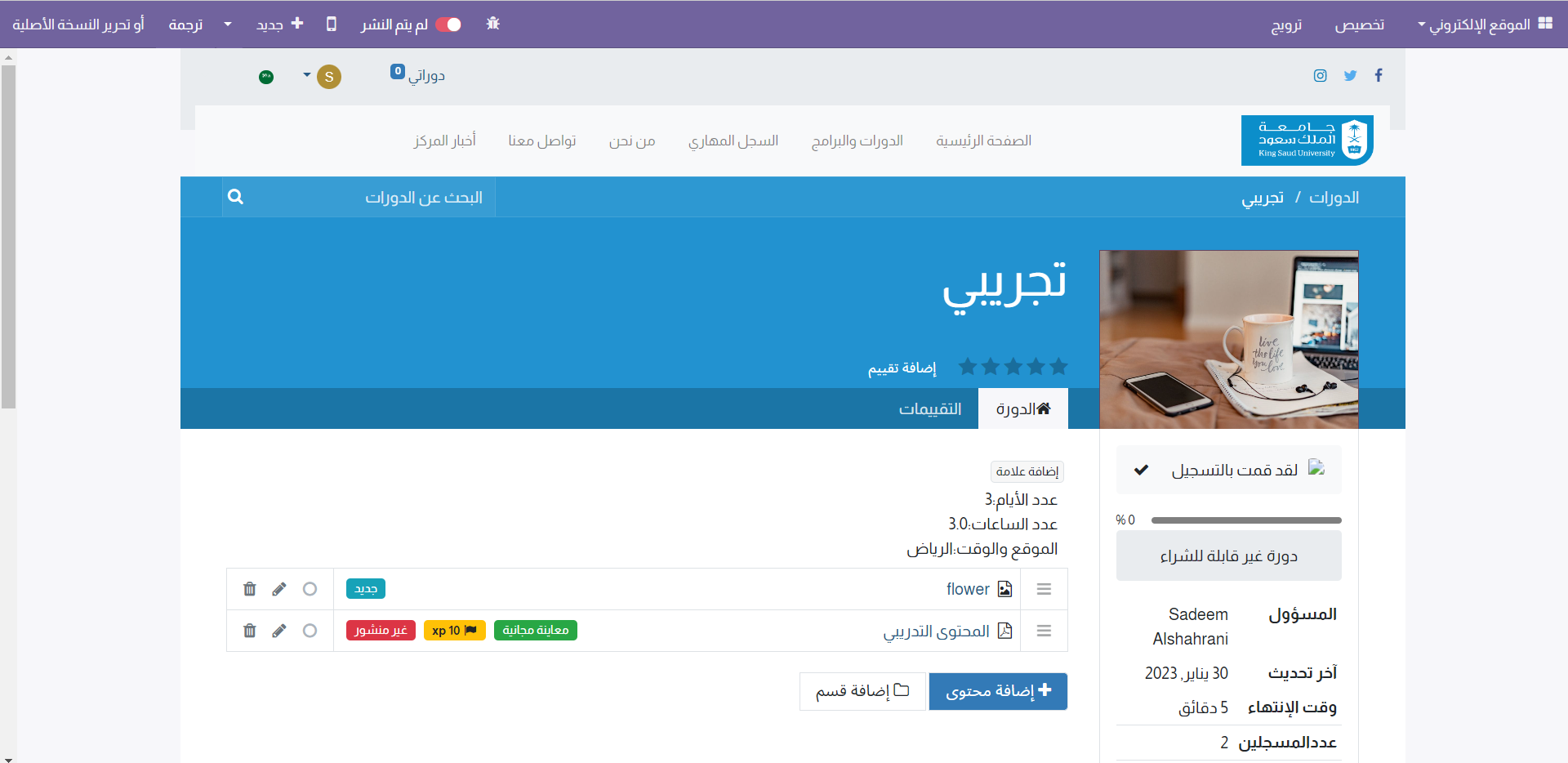 عند الإنتهاء من انشاء الدورة قم بالضغط على أيقونة الذهاب الى الموقع الإلكتروني
